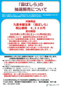 冬期限定で販売しております「霜ばしら」について、今期も事前に申し込みをいただき、抽選販売を行う事といたしました。
