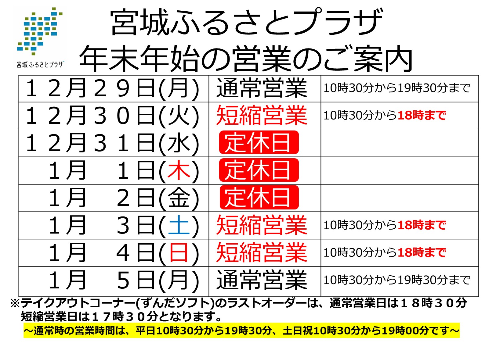 いつも宮城ふるさとプラザをご利用いただきありがとうございます。